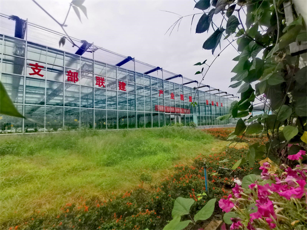 村里修建的3000多平方米的智能玻璃温室,集培训、会议、水培、无土栽培为一体。