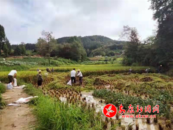 村民抓住天气放晴有利时机恢复生产,抓紧时机抢割抢收,针对劳动力紧缺的农户,群众组成互助组互帮互收,中心社区干部积极做好劳力统筹,加强服务指导。