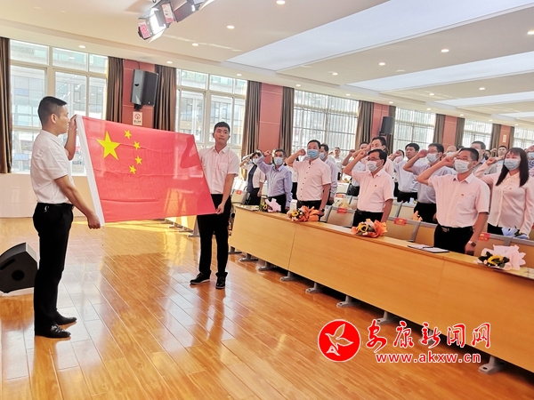 “我志愿成为一名人民教师,忠诚党的教育事业,遵守教育法律法规,履行教书育人职责……”活动中,与会教师面向国旗宣誓,用铮铮誓言表达了“赓续百年初心,担当育人使命”的坚定信念。