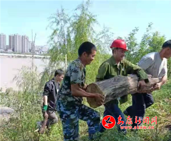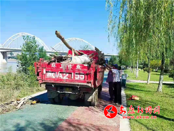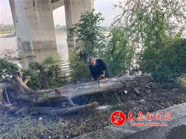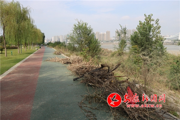 行动中,护河员和专业施工队员密切配合,对汉江南岸金川段、心石段、油坊段、白庙段河道护坡及岸边的杂树木进行拉网式清理整治,工人们利用电锯、刀等工具,将粗大杂树木进行切割规整,连同细小树枝杂草一道搬至步道,然后用车统一运走。据了解,截至9月23日,共清运走杂树木60余车,让河岸与周边的美景更好融为一体。