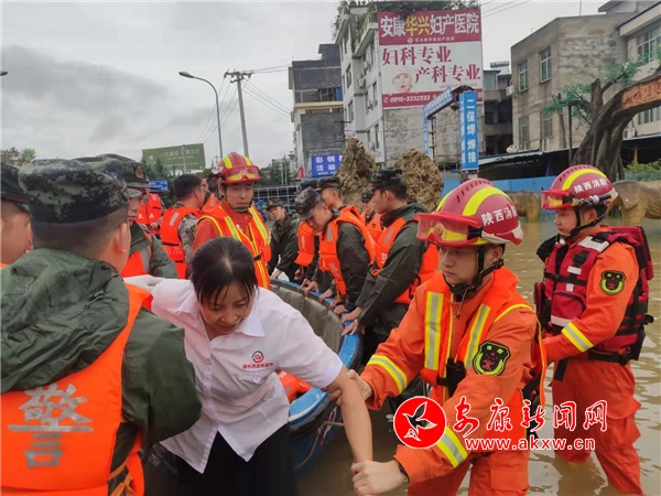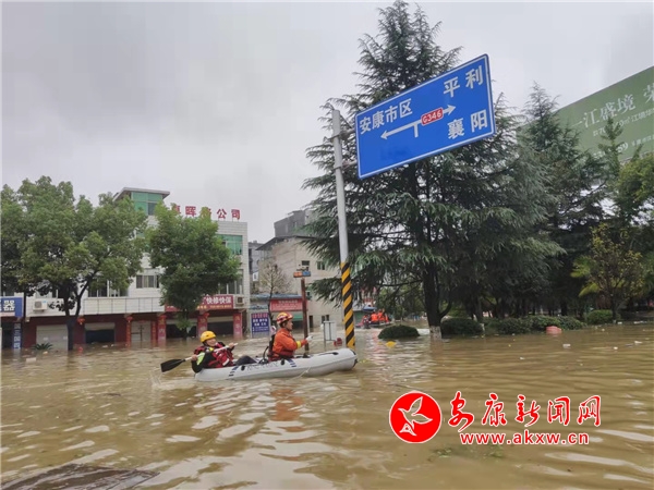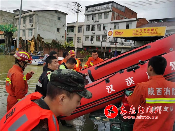 汉滨消防紧急调集皮筏艇、冲锋舟救援城东受灾群众