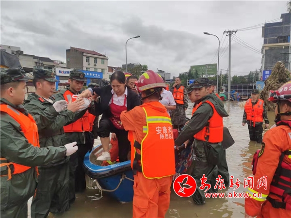 9月28日,汉滨区消防队员紧急调集皮筏艇、冲锋舟救援城东受灾群众,协助转移。(记者 唐正飞 通讯员 李大涛)