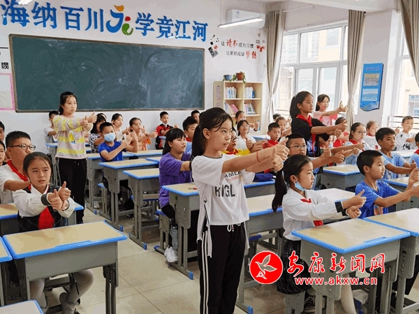 同时,学校把周三课后延时服务时间为学校社团活动时间,这一天为学校无作业日。其中一二年级以班为单位开展音乐、美术和体能的班级社团活动,三至六年级各班学生实行走班制,根据自身兴趣爱好,分别加入到鼓号队、电子琴、非洲鼓、古筝、合唱、播音主持、拉丁舞、民族舞、街舞、戏剧、儿童画、纸盘画、书法、英语口语、足球、乒乓球、军体操、跆拳道、信息技术和机器人等26个社团中去。通过全员社团活动,极大地丰富了学校课程内容,激发了学生的参与兴趣,促进了学生的全面发展。为了解决两节延时课之间气氛沉闷和学生运动量不足的问题,在每天两节延时课之间安排了5分钟的手指舞课间操,让学生在延时课时间有了全身心放松的时段和内容。
