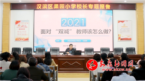 本网讯(通讯员 谭华山)为进一步落实“双减”政策,促进教育教学工作提质增效,10月11日下午,汉滨区果园小学开展“双减”专题讲座。