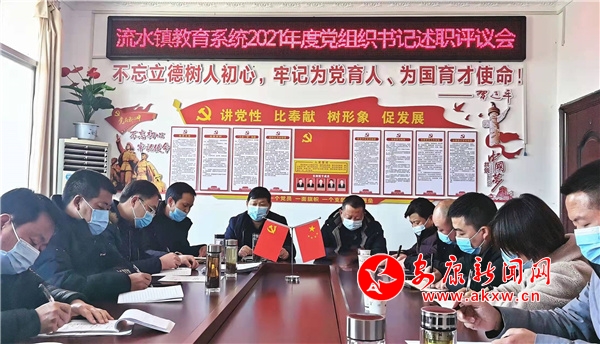 本网讯(通讯员 张毅宏)12月28日,汉滨区流水镇教育党总支组织召开2021年党组织书记抓基层党建工作述职评议会议。汉滨区教体局一行到会指导,党总支所属各支部书记、各校(园)长、党员代表、教师代表共20余人参加了会议。