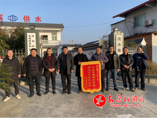 本网讯(通讯员 王贤峰)近日,汉滨区流水镇凤凰村村民委员会一行2人代表全村百姓,来到了汉滨区水利局流水供水分站,送上了一面印有“心系百姓排忧解难,畅送甘泉情深意浓”的大红锦旗,并致上一封情真意切的感谢信,感谢汉滨区水利局流水供水分站为该村百姓安全用水提供的优质服务。