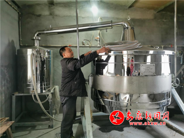 张朝河在酿酒坊操作