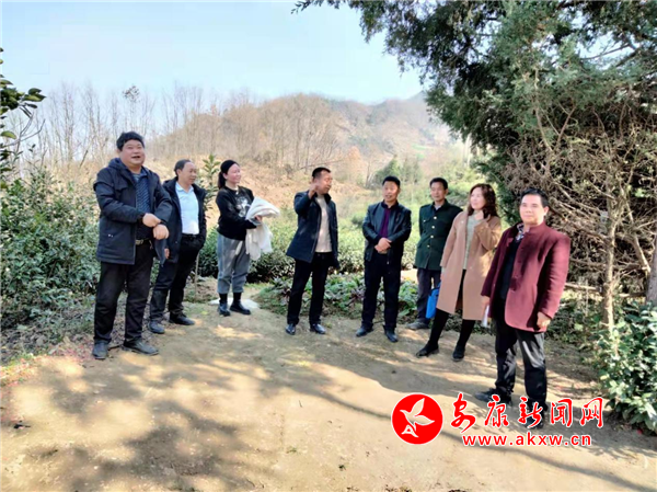 镇村干部及驻村队员在该地检查春耕生产