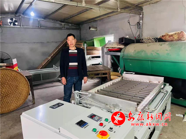 赵真群在检修茶叶加工机械