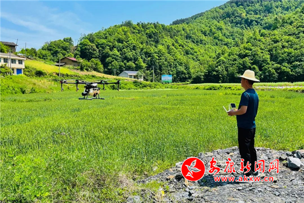 4月26日,在汉滨区晏坝镇晏坝社区麦田里,植保无人机进行飞防作业。近期,汉滨区局部区域发生小麦条锈病危害,汉滨区农业机械化技术推广站、农业技术推广站迅速组织专业化防治组织进行机械化病虫害防治,全程采用无人机喷防作业,及时、高效地为当地农民解决实际困难,受到当地农民的欢迎。下一步,汉滨区农业农村部门将在全区逐步培训和推广无人机飞防作业,助推农作物病虫害防治走向无人机飞防时代。(图文/周濬 弋锋)Res安康新闻网