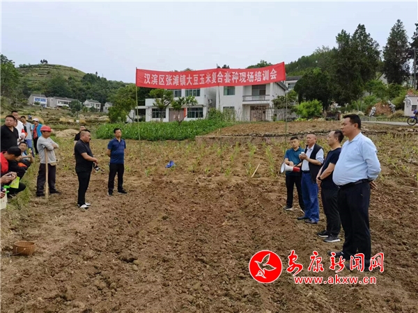 本网讯(通讯员 李靖)近日,汉滨区张滩镇在田湾社区召开大豆玉米复合套种现场技术培训会,全力保障粮食生产。