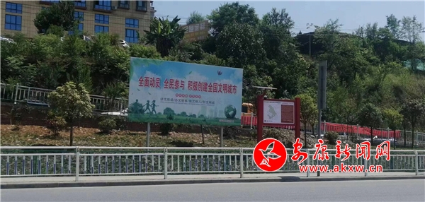 在城乡接合部制作大型创建全国文明城市公益广告牌,在各办事处背街小巷因地制宜制作创建全国文明城市文化墙和公益广告宣传栏,对破损过时的宣传栏进行更新更换。