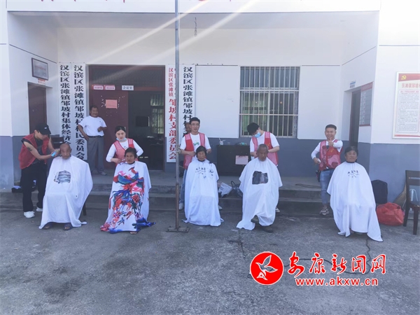 本网讯(通讯员 李靖)近日,汉滨区张滩镇邹坡村开展志愿服务,免费为村内60岁以上的老人提供理发服务。