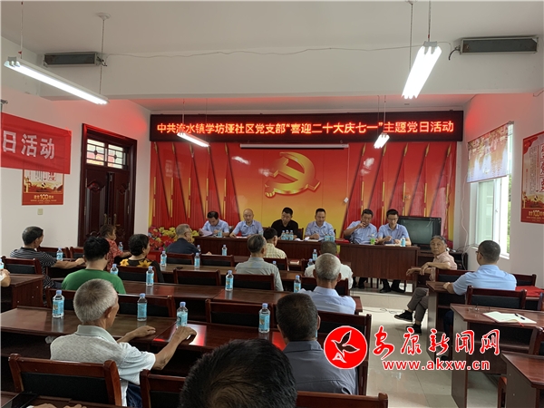 本网讯(通讯员 鄢涛)6月23日,汉滨区流水镇学坊垭社区党支部开展“喜迎二十大庆七一”主题党日活动。庆祝中国共产党建党101周年,进一步激发党员的政治热情,增强党员的责任感和使命感,发挥党员先锋模范作用,实现党史学习教育常态化,以饱满的精神风貌和昂扬的斗志迎接党的二十大胜利召开。