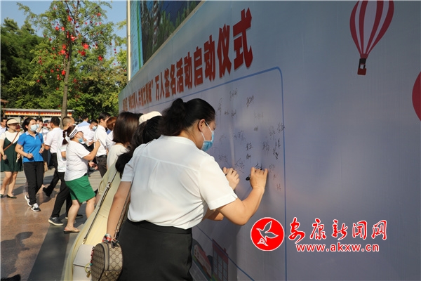 此次活动旨在以万人签名活动为载体,发出共创文明城市倡议,全面提升香溪社区居民群众对创建全国文明城市的知晓率、支持率和参与率,发动更多市民加入到“创文”中来,营造出讲文明、懂礼仪、遵公德、守法纪的浓厚氛围,迅速掀起全市创文工作高潮。