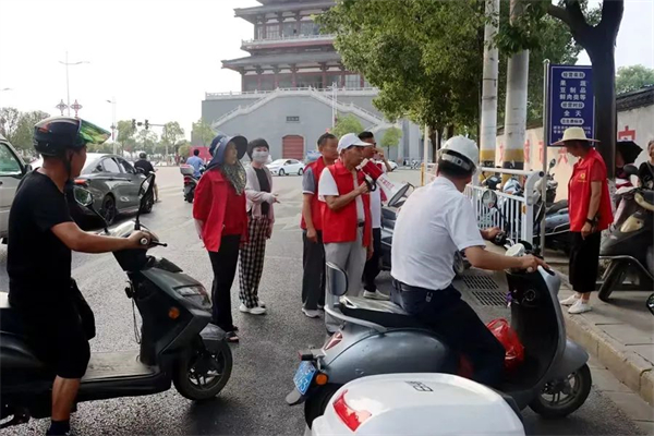 7月14日清晨,江北街道办事处主任胡兴宝带领整治行动小组,以中渡路及周边农贸市场为重点,对非机动车乱停乱放交通乱象进行专项整治和宣传教育。整治行动中,工作人员对占道乱停乱放的车主进行劝导,要求挪移至指定停车位;对驾驶人临时停车的,及时上前劝阻;同时对驾驶人加强宣传教育,引导驾驶人规范有序停车、文明驾驶,共同营造良好的道路交通环境。