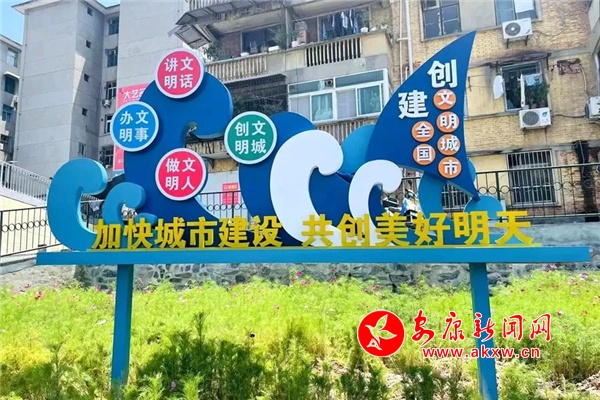 步入社区活动广场,以“创建全国文明城市”为主题的景观小品在绿荫丛中特别醒目,让居民在休闲娱乐的同时感受到扑面而来的文明新风。在社区主次干道上随处可见的公益广告,用文明热情的声音问候着每一位居民。