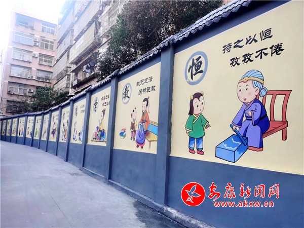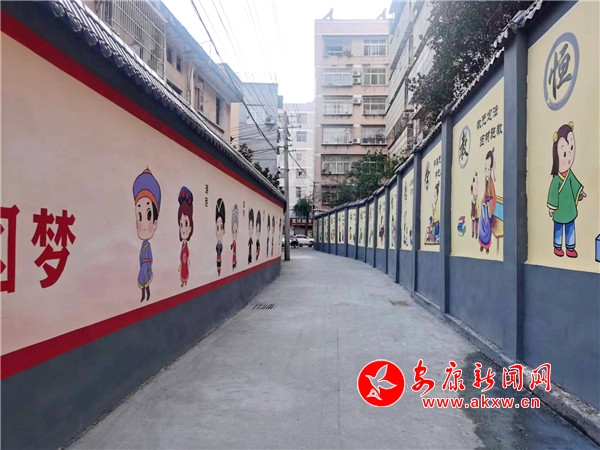 在大北街社区土地楼巷,破旧的砖瓦墙被重新粉刷的干干净净,还设计了荷花图,一张张脸谱将老城巷道添上了一层古朴的面纱。在东关社区潘家坑巷道,一侧墙壁设计的是代表各个民族特色的彩绘,象征民族大团结,另一侧墙壁设计的是孝顺、勤劳、节俭等传统美德,在西关社区,设计的是龙舟文化……
