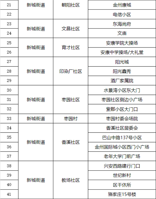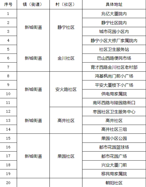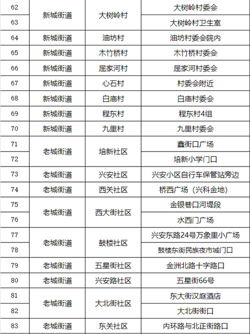 汉滨区中心城区全员核酸检测采样点一览表