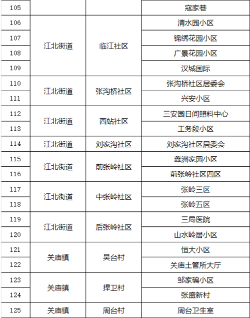 汉滨区老城街道办事处、建民街道办事处、新城街道办事处、江北街道办事处及张滩镇、关庙镇、吉河镇中心城区范围(具体见附件所列村、社区)常住和流动人员一律参加核酸检测。