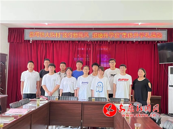 本网讯(通讯员 张伟)为大力弘扬和践行社会主义核心价值观,坚决抵制大操大办的不良风气,持续巩固深化新民风建设成果,8月19日,县河镇大垛村举行了“践行新民风 拒绝升学宴”集体升学礼活动。大垛村四支队伍、13名准大学生及部分学生家长参加活动。