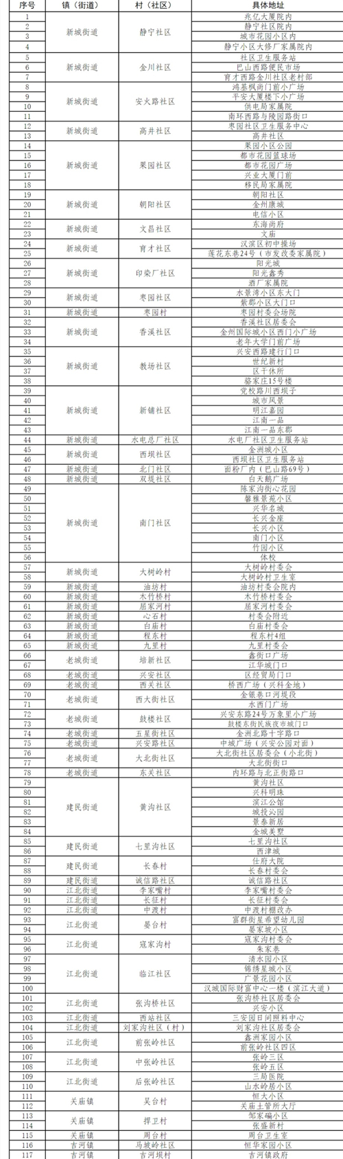 汉滨区老城街道、建民街道、新城街道、江北街道及关庙镇、吉河镇中心城区范围(具体见附件所列村、社区)常住和流动人员一律参加核酸检测。
