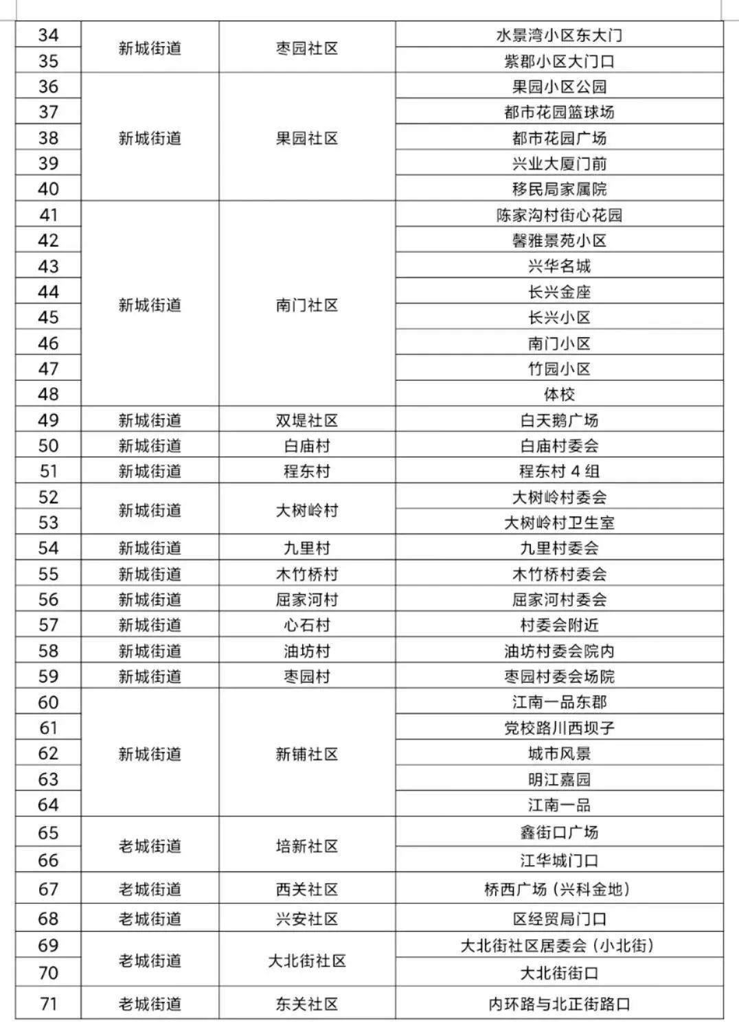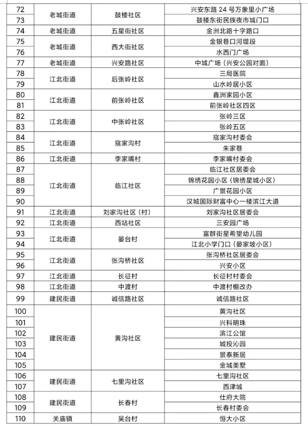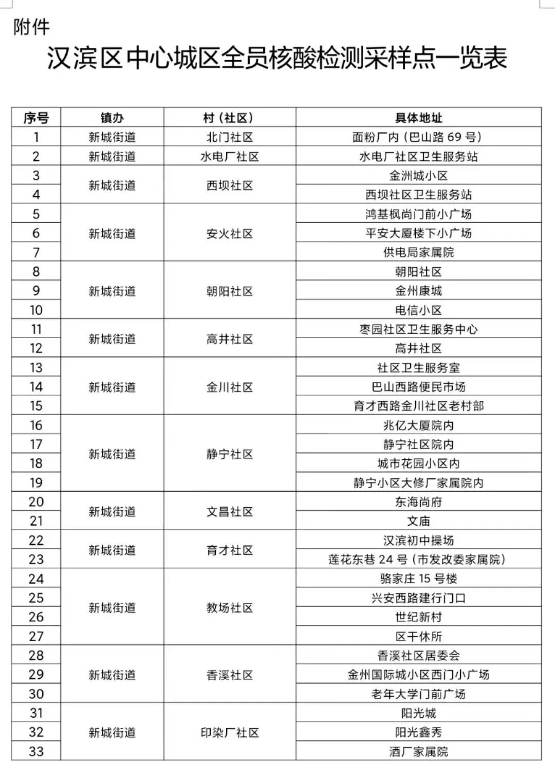汉滨区老城街道、建民街道、新城街道、江北街道及关庙镇、吉河镇中心城区范围(具体见附件所列村、社区)常住和流动人员一律参加核酸检测。