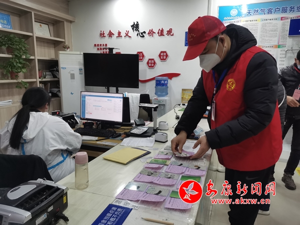 11月27日一大早,区人大机关干部杨涛就忙碌了起来,为保障所管控的小区住户能正常使用天然气,他便只身前往缴费站缴费,仔细整理着每一张票据。燃气缴费站分别在城东、城西的两个方向,来来回回地奔波,让本来就体胖的他,在这寒冷的冬天都出来好几头汗。据小区物业负责人介绍,杨涛就单单为居民缴费这一项就,就来回跑了3趟,代替23户居民天然气缴费。