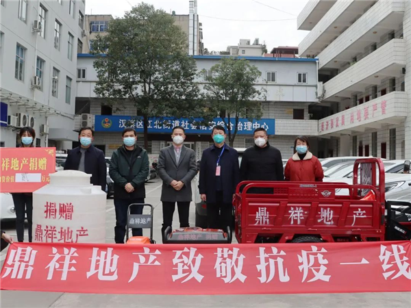 疫情无情人有情,关键时刻显担当,12月1日下午,鼎祥房地产开发有限公司为江北街道送来一整套价值2万元的消杀物资——发电机一台、洗车机一台、电动三轮车一辆、喷洒水桶一个,以实际行动支援防疫一线、践行社会责任。