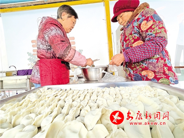 的确,食堂里饺子的热气、老人们交流的笑语热烈地交织在一起,从屋里溢出,填满了宁静的文化村。