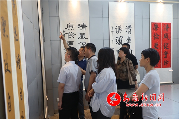 为进一步筑牢纪检监察干部廉洁防线,激发纪检监察干部爱岗敬业的工作热情。5月19日下午,汉滨区纪委监委组织部分机关干部到区文化馆参观“弘扬廉洁文化,共享书韵汉滨”书法作品展。据悉,本次书法作品展旨在以书法艺术的方式弘扬汉滨廉洁文化,展示传承优秀传统文化中的清廉元素,以笔墨色彩寄情抒怀、培根铸魂,建设具有汉滨地方特色的廉洁文化品牌。(郑时根/图文) Mzh安康新闻网