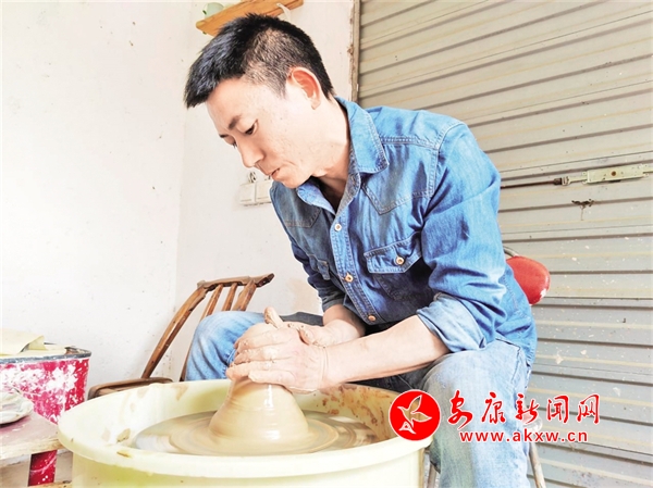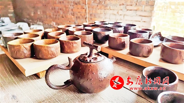 走进汉滨区石梯镇叶沟村汉水陶艺工作室,琳琅满目的茶器、碗具、泥塑等大大小小的陶艺作品,都出自来显军之手。38岁的来显军看似有些内敛,却很有内涵,他说,生活在农村,从小就喜欢玩泥巴,跟随爷爷学习泥塑,用泥巴捏各种各样的东西。就这样,泥巴在他手里玩活了。