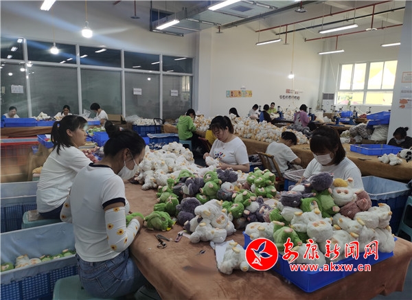 近年来,汉滨区人社局大力培育招商企业毛绒玩具产业,打造米小点毛绒文化、IP原创、品牌孵化、柔性制造、供应链融合于一体的毛绒玩具。现发展规模智能化裁剪线2条、高清大视角激光机5台,规范化车缝120台,高效充棉设备6套,上岗员工300人左右,规划全链年度产值1.8亿元。2020年12月25日正式投产以来,产能逐月递增,截止2023年6月份,日产中高档玩具近2万只,月产值近600万,员工平均工资达到4000元。(图文/唐志丹)ZTw安康新闻网