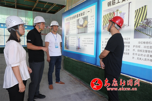 监督检查组在建筑施工现场了解安全规范操作情况