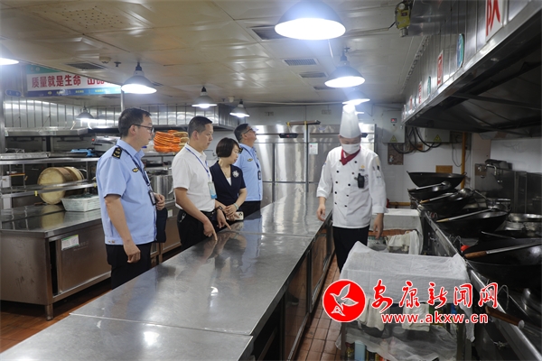 监督检查组在安康宾馆后厨操作间了解燃料规范使用情况