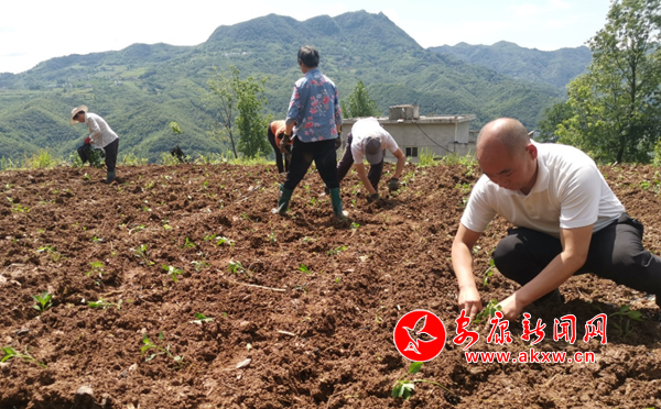 “姐,这是你的50株辣椒苗,回去请尽快移栽到地里,一定要及时浇水……”,瀛湖镇阳坡村副主任刘琪一边发放辣椒幼苗一边向村民叮嘱着。