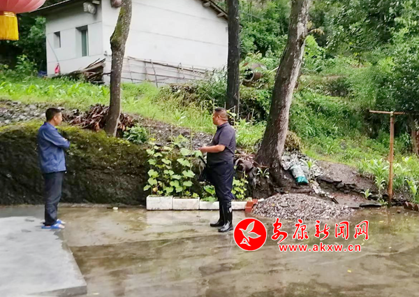 简短布置任务后,“四支队伍”工作人员赶赴本村9组的几户有滑坡危险的农户家,详细查看其房前屋后情况,并叮嘱监测人及户内成员,要密切关注雨情变化,服从工作人员的安排,监测部位每一小时要巡查一次。遇有异常情况要及时报告,并果断采取撤离措施,第一时间将人员撤离到指定的安置户家中,确保生命安全,同时要求邻里之间的要发挥邻里互帮作风,积极协助监测人做好信息传递和人员转移、撤离工作。