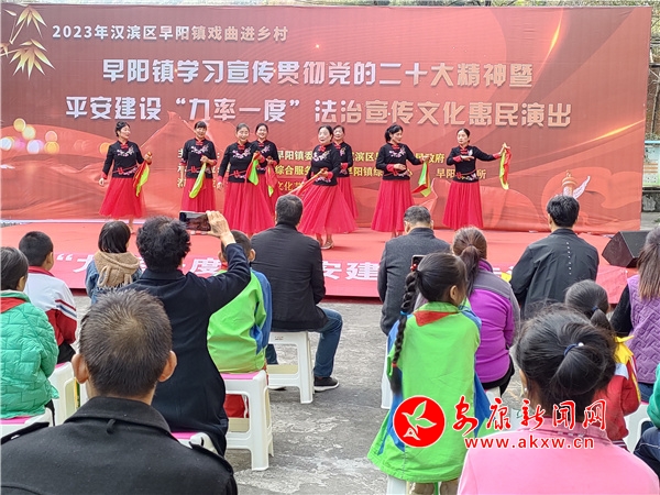 本网讯(通讯员 汪丁 胡德良)为丰富山区群众的精神文化生活,进一步提升“九率一度”知晓率,10月31日,汉滨区早阳镇学习宣传贯彻党的二十大精神暨平安建设“九率一度”法治宣传文化惠民活动走进丁河村,为当地群众送去了精彩的文艺节目和平安建设知识。