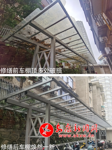 心系群众,修缮车棚暖民心。作为新城办安火路社区的共驻共建单位,区人社局事业单位党支部持续深化“五同”工作机制创建工作,主动靠前认领“微心愿”,解决群众的急难愁盼问题。近日,为了有效解决无物业鹏诚小区内车棚顶多处损坏,出现漏雨等问题,支部在“安心到”APP平台上主动认领“微心愿”,立即行动,组织施工人员对破损的车棚顶部全部进行更新修缮,消除安全隐患,有效维护了居民停车安全。目前,车棚顶修缮工程已经顺利完工。