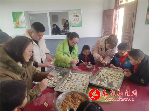 同学们还在老师的指导下分工协作,和面、擀面、剁馅,包饺子、煮饺子、吃饺子,当大家第一次吃到自己亲手包的饺子时孩子们的脸上都洋溢着幸福的笑容。