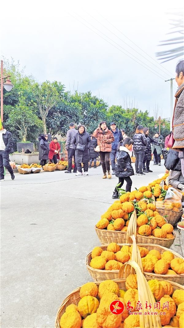 活动现场,该村柑农将自己种植的柑橘、柚子等农产品进行售卖,吸引了众多游客驻足品尝、购买。