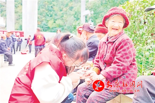 志愿者为老人剪指甲