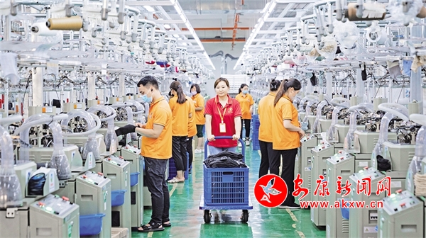 △ 五里工业集中区织袜车间一角