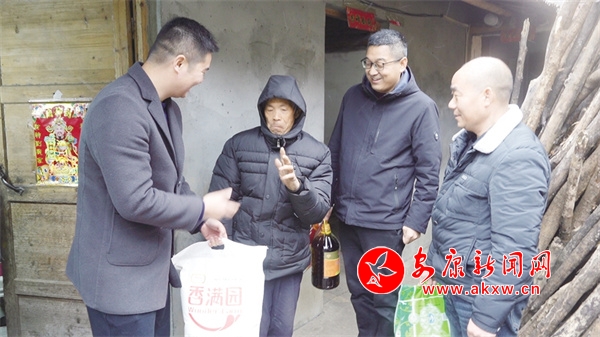 “过年好。恭喜发财!”“万物呈祥荣盛世 九龙献瑞庆良辰。这副对联美得很。”“气温低,取暖注意安全。”汉滨区人社局派驻瀛湖镇阳坡村第一书记李大林和村党支部书记晏真云一路边和乡亲们打着招呼、送去祝福,边叮嘱着冬季取暖安全和森林防火等相关注意事项,两人径直走到了村民晏世全家中。