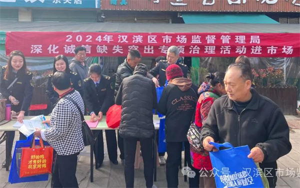 近日,汉滨区市场监督管理局开展“深化诚信缺失突出问题专项治理”宣传进市场、进商业综合体活动。