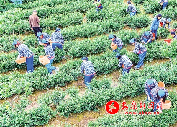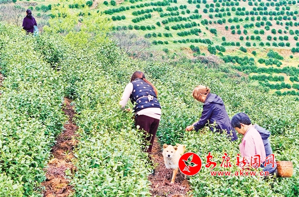 △ 茶农在汉滨区瀛湖镇火星村茶叶示范园采摘新茶MbL安康新闻网