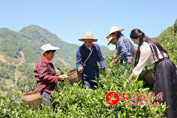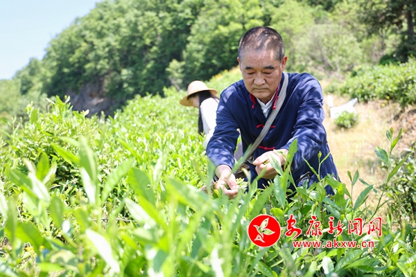 立夏时节,汉滨区大竹园镇茶栈村,王春久和茶农们在海拔800米之上的高山茶园采摘鲜叶,制作春茶过后头采夏茶。
