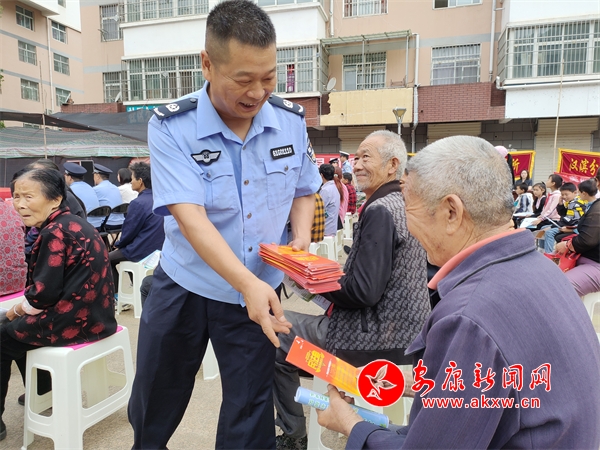 在演出中,该镇将文化惠民演出与法治宣传巧妙结合,各政法单位结合各自职能,纷纷向现场观众宣传各自工作职责、国家安全、平安建设、九率一度、反诈知识等内容,市场监管、综治、司法、妇联、卫生等部门通过发放宣传资料、答疑解惑等方式,进一步增强大家的法治意识和安全意识。在活动中,还穿插了两次平安建设、九率一度有奖竞答环节,让大家在家门口享受文化大餐的同时,近距离接受一次法治教育。