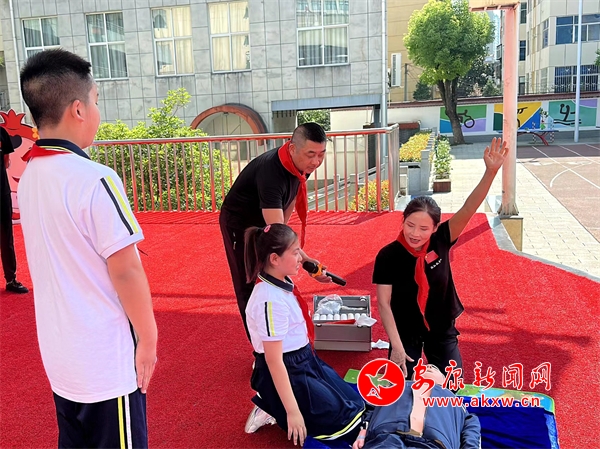 随后,开展了水中憋气体验和模拟心肺复苏救护演示,现场互动中,同学们踊跃上台体验水中憋气,交流溺水感受,进一步增强学生防溺水的自觉意识。模拟心肺复苏救护演示培训现场利用模拟人教具进行了心肺复苏救护全程的示范和演练,使师生们正确掌握了救护要领。