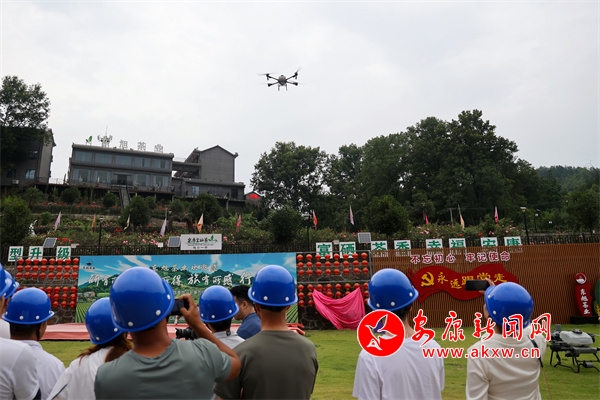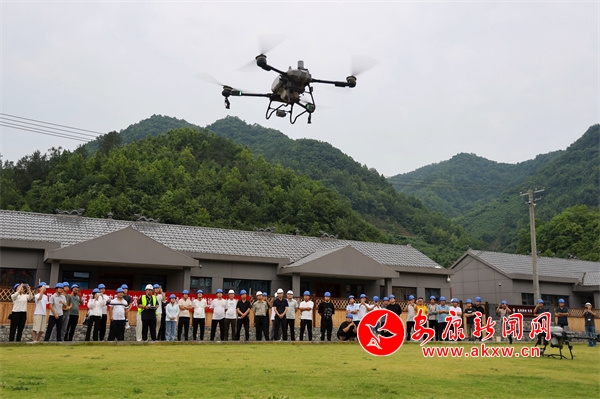 本网讯(通讯员 周濬)6月18日,在汉滨区大竹园镇东旭茶庄上空,一架架植保无人机腾空而起,一边飞行,一边演示撒播作业。这是植保无人机学员在教练带领下,在室外开展飞行练习。